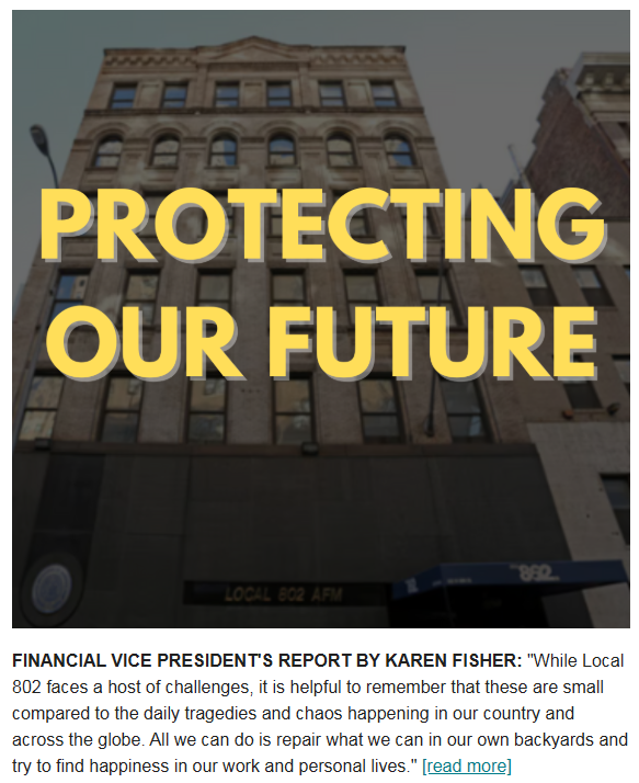 Read Local 802 Financial Vice President Karen Fisher’s report in the October 2025 issue of Allegro