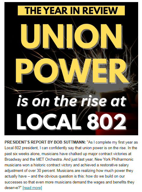Read Local 802 President Bob Suttmann’s report in the December 2025 issue of Allegro