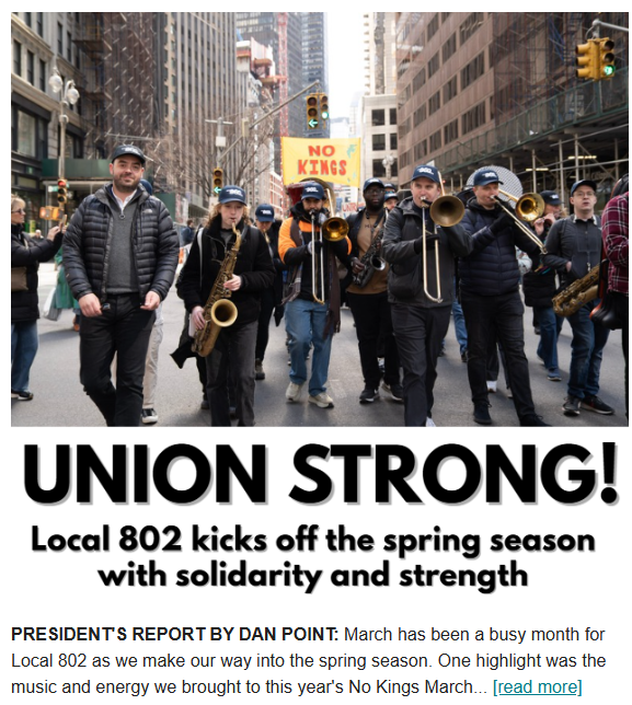 Read Local 802 President Dan Point’s report in the April 2026 issue of Allegro