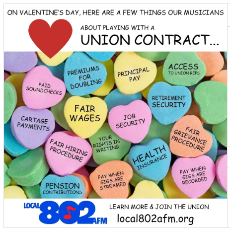 Local 802 represents thousands of highly skilled musicians who drive New York City’s thriving cultural and tourism economy. Its members — who perform on Broadway, at Lincoln Center, Carnegie Hall and Radio City, in recording studios, as teaching artists, on late-night TV shows and in other televised bands, in hotels, clubs, festivals and venues across NYC — are protected by collective bargaining agreements ensuring proper classification, fair treatment and a living wage. FOR MORE BACKGROUND ON LOCAL 802, CLICK HERE