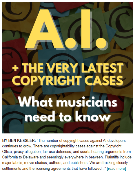 A.I. & THE VERY LATEST COPYRIGHT CASES: WHAT MUSICIANS NEED TO KNOW