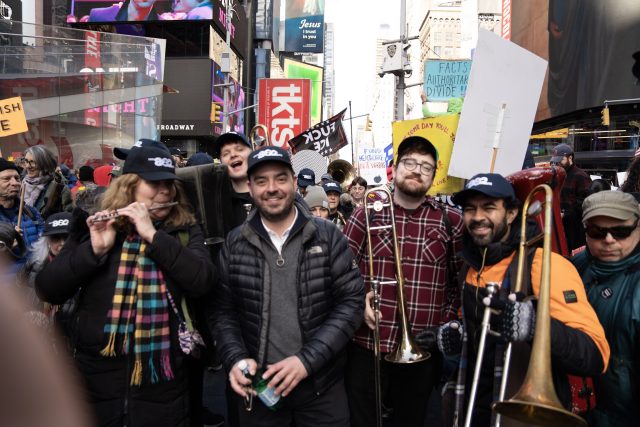 More than 30 Local 802 musicians marched together at the front of the parade, starting at 57th and Broadway going down through Times Square. Spirits were high and the streets were crowded – far more so than even on New Years Eve. We thank all the members of the band who volunteered their time to lead the march with joy together with dozens of other labor unions and community groups from across the city.