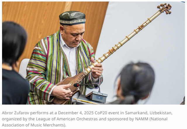 The outcome was not guaranteed. Heather Noonan, Vice President for Advocacy for the League of American Orchestras, who played a leading role in organizing global music stakeholders in advance of the CoP and represented the voice of music makers during the negotiations in Samarkand, says, “Brazil came to the table with absolute commitment to the Appendix I listing, while also signaling concerns for traveling musicians.” Brazil also requested that the working group that was convened to discuss the matter be limited to the governmental representatives, which is unusual. However, Noonan says, “In collaboration with other stakeholders, we were able to engage with the parties and seek a balanced approach. The negotiating parties needed essential information from music stakeholders to make informed decisions, like the volume of bows that cross borders and assurances of support for conserving wild-grown trees.” She adds, “The U.S. government, alongside other global parties, was very involved in the working group, and highly effective at bringing forward facts about international travel with musical instruments and bow production. Their leadership and partnership was essential on the ground.”