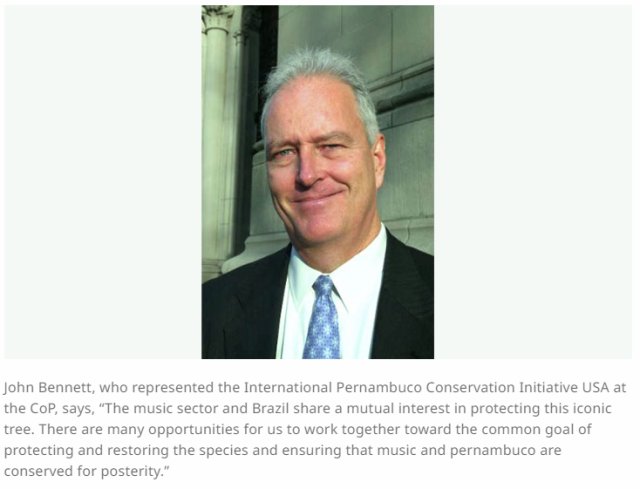 John Bennett, who represented IPCI USA at the CoP, says, “The music sector and Brazil share a mutual interest in protecting this iconic tree. I think there are many opportunities for us to work together toward the common goal of protecting and restoring the species and ensuring that music and pernambuco are conserved for posterity.”